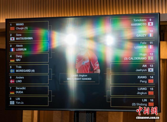 图为屏幕表现男单对于阵签表。记者 侯宇 摄