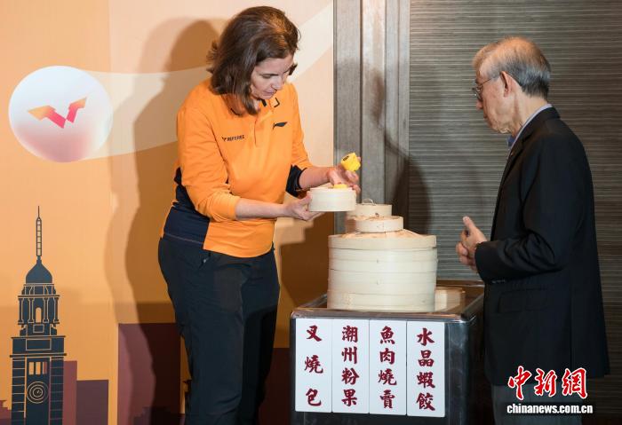 图为原次抽签以喷鼻港特征“蒸笼”战“焚售”“虾饺”面心模子动作抽签对象。记者 侯宇 摄